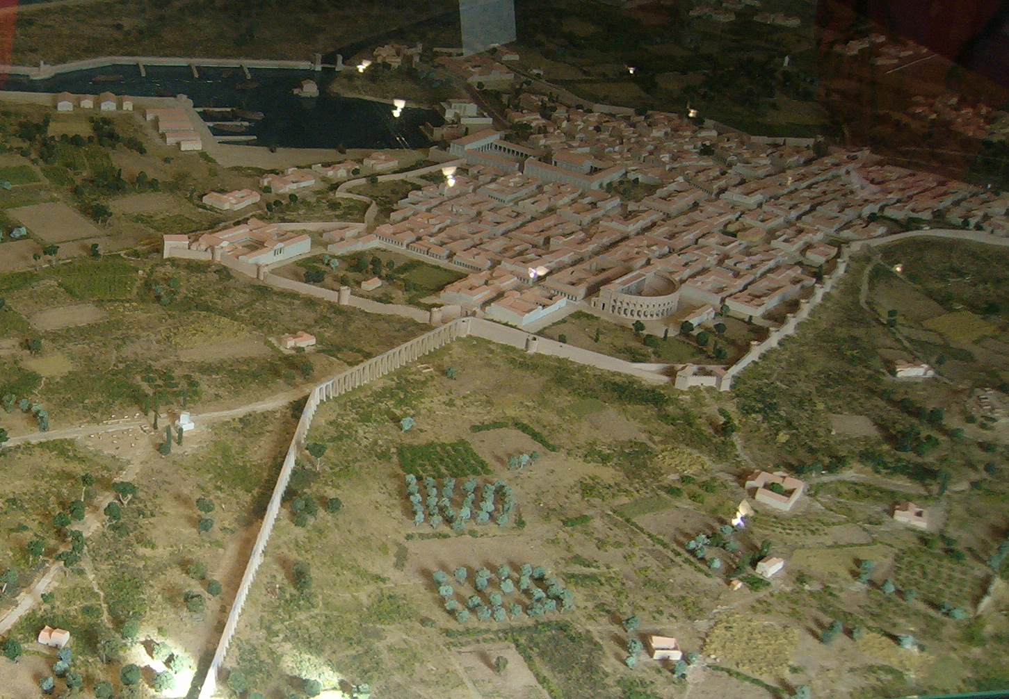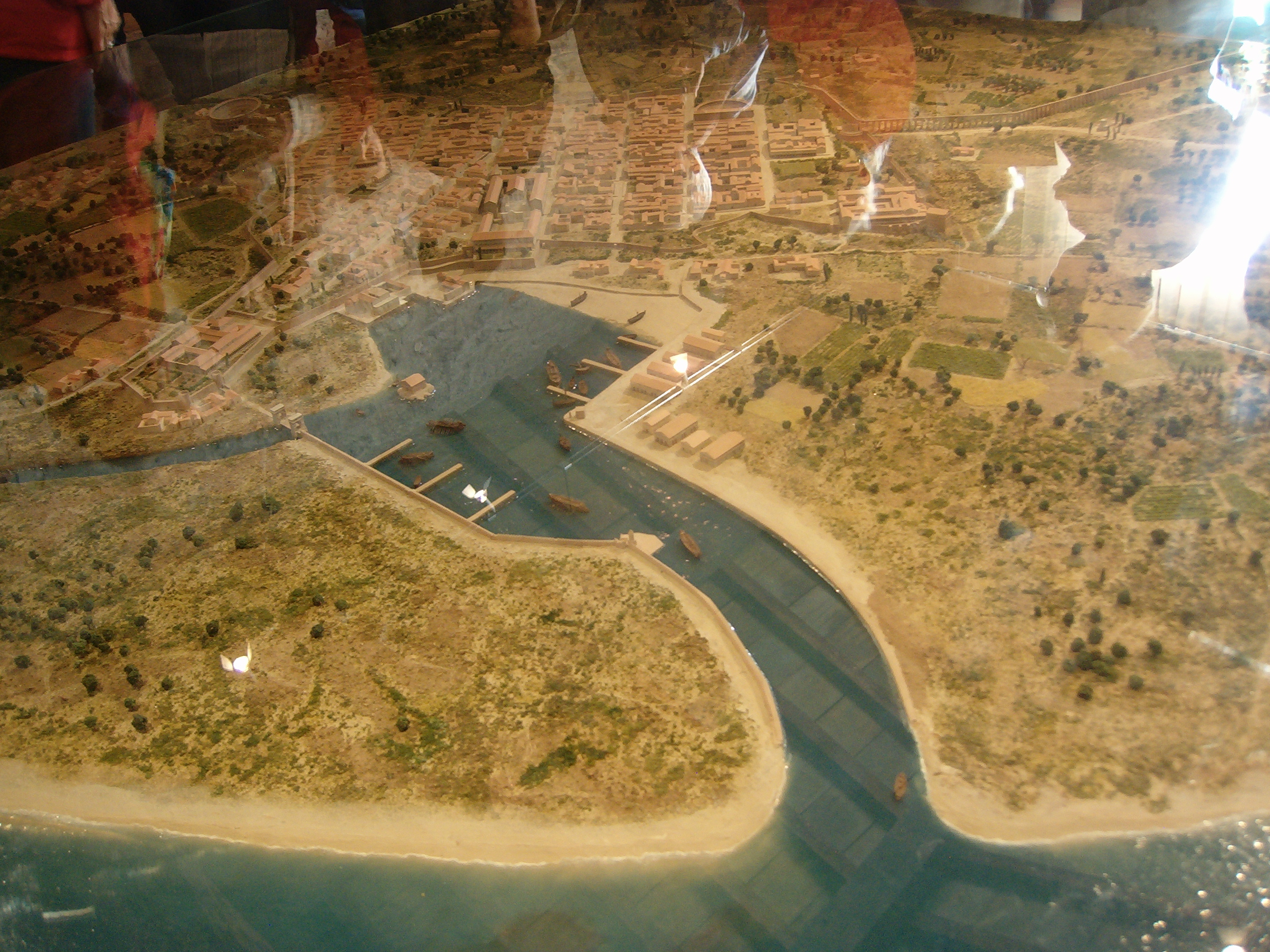 two views of a scale model of Roman Fréjus, showing the river canal and just how close the town was to the coast 2000 years ago.