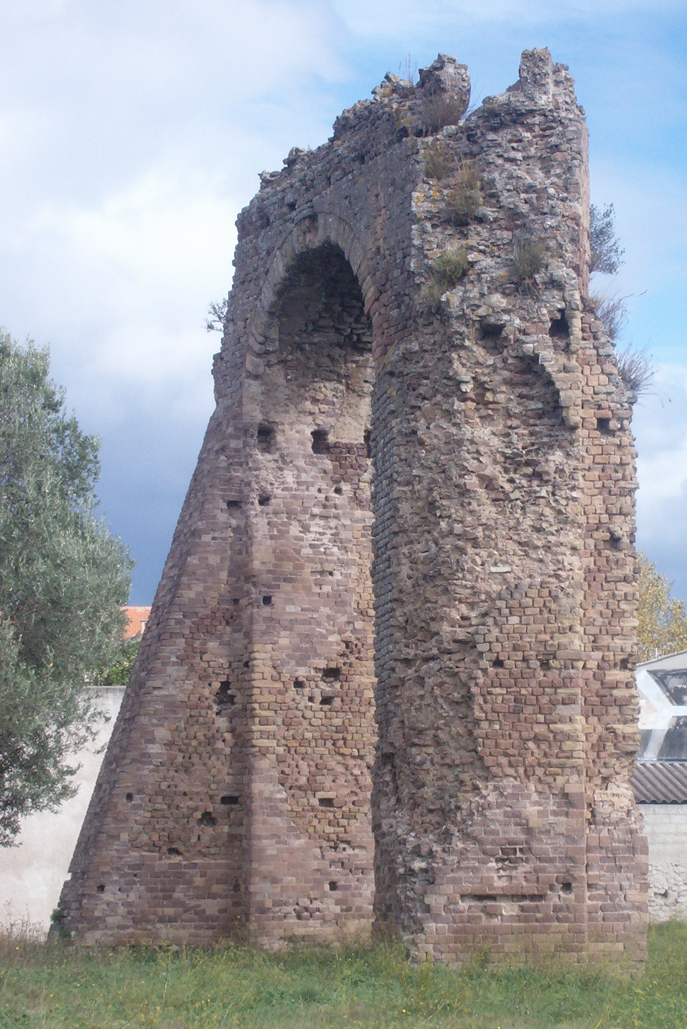 The aqueduct brought the Roman town’s water supply from about 50 kilometres away – below are some of the remaining pillars and an arch – the channel through which the water flowed is visible at the top of each pillar. As with the other Roman constructions in Frejus, the aqueduct was built using the reddish-brown volcanic rock from the nearby Massif de l’Esterel.