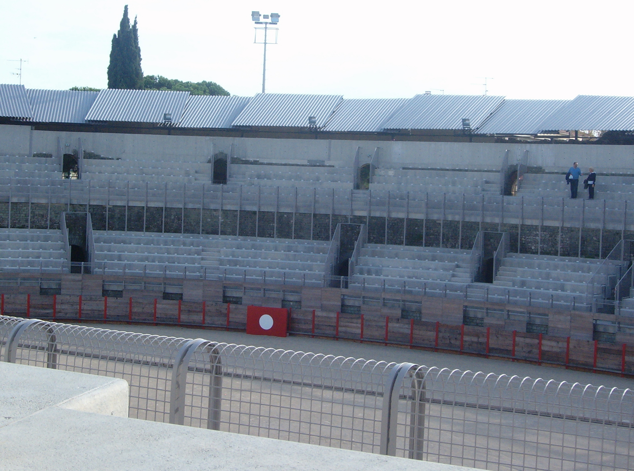 In creating an entertainment venue in the Roman arena – rock concerts and bull fights are held here – vast amounts of concrete have very recently been poured directly onto the ancient stonework. The arena, which seated around 10,000 in Roman times, had over the centuries been reduced to about half its original height, although the complete elliptical shape had remained intact. By building the walls back up again to their full height with concrete and edging the seating structure in corrugated roofing, the millenniums-old, warm, red stonework has been dwarfed into sorrowful insignificance. Only a colour photo in one of the corridors reminds us of what a beautiful construction and tribute to Roman builders this was, until about 5 years ago.