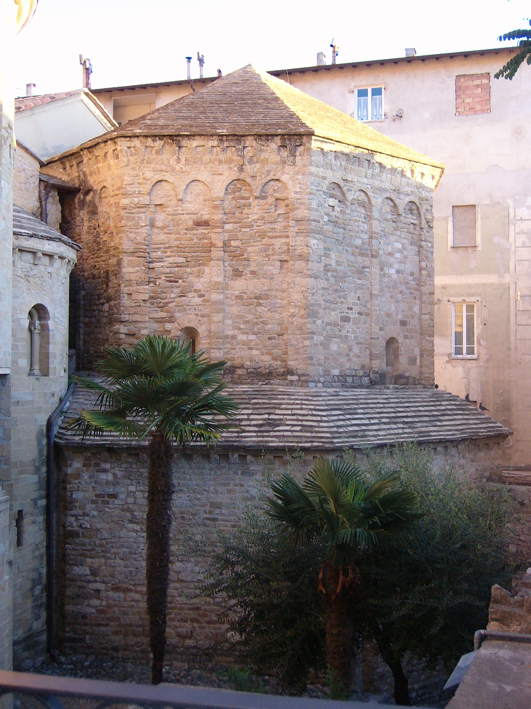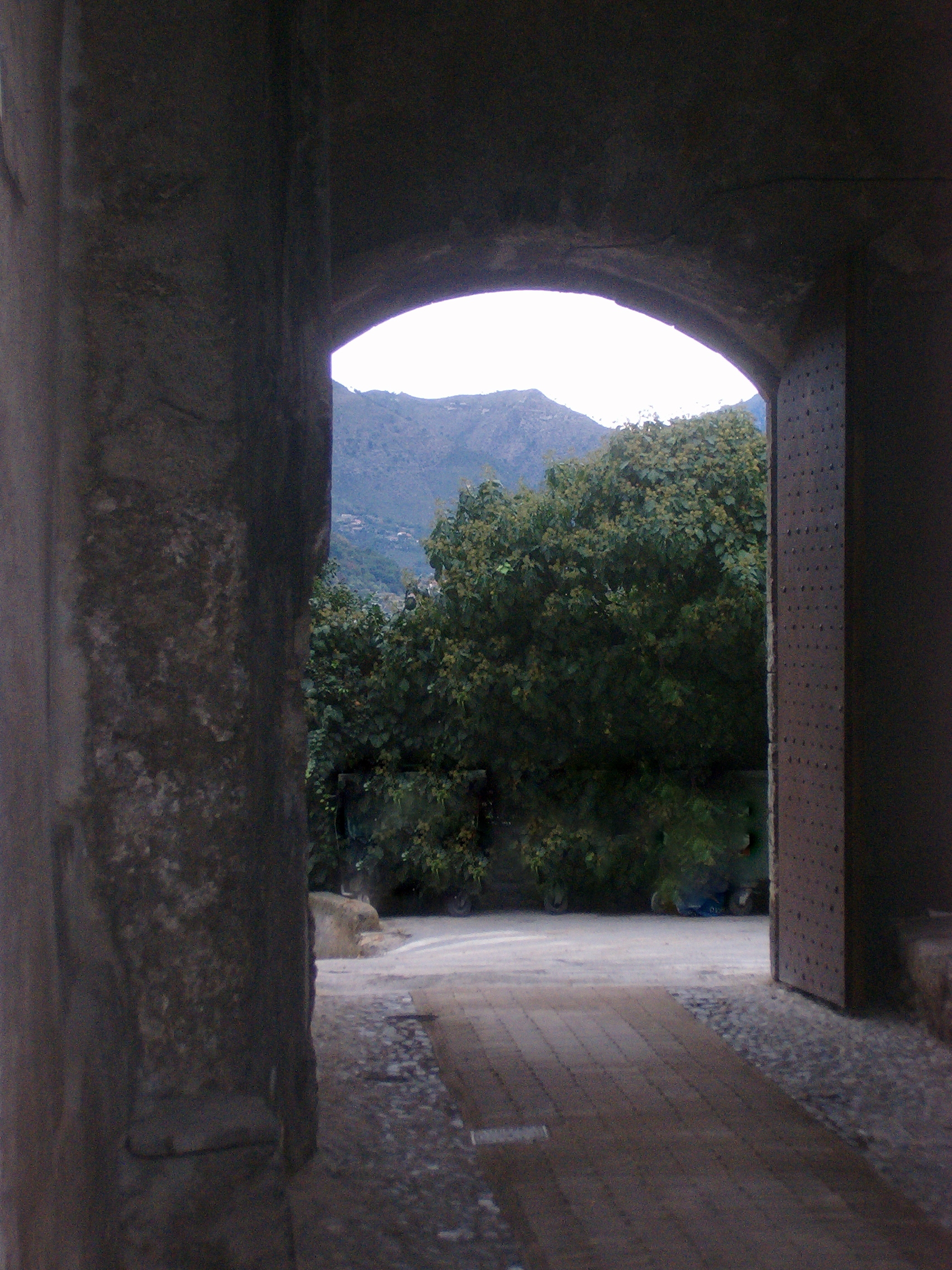 The gateway’s exterior appearance dates from the early 1800s and although it is quite stark, I love the photo below: the setting sun is just catching on the bell towers. I often think of weary travellers arriving in Ventimiglia in those days before cars and trains: some of them would have seen the sea for the first time that day, just as there’s a glimpse of it on the left of the photo.