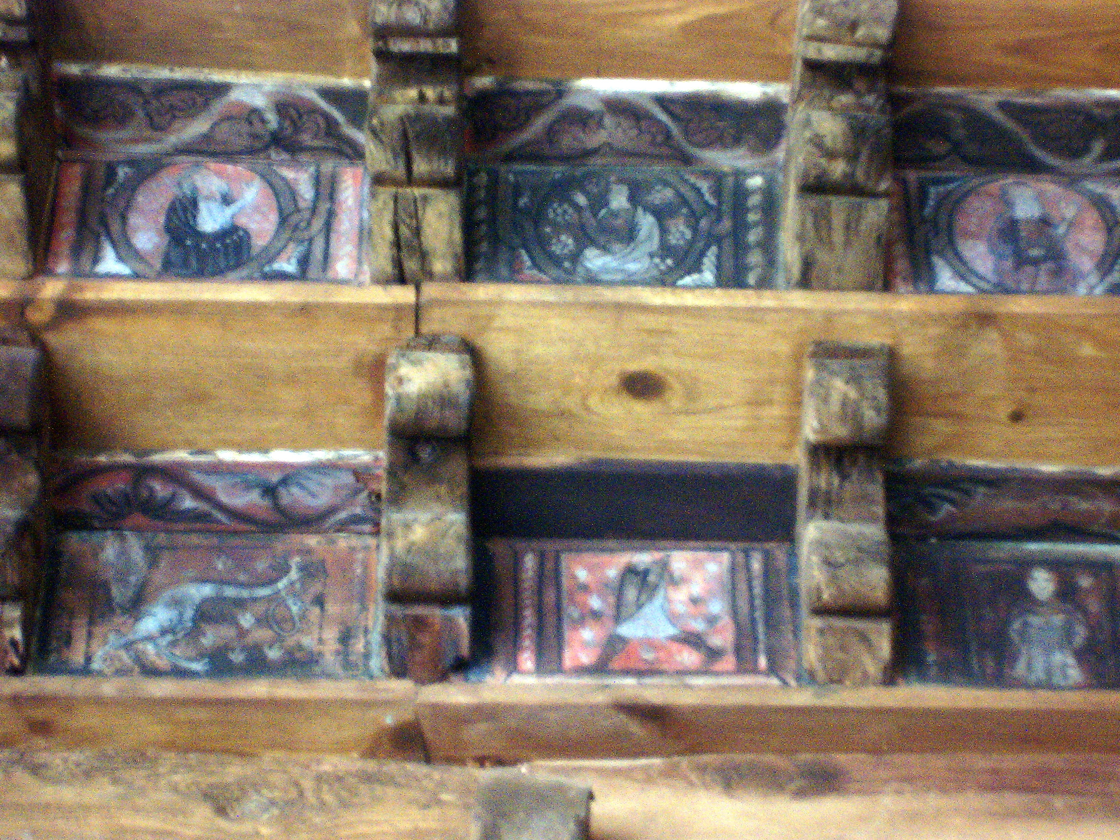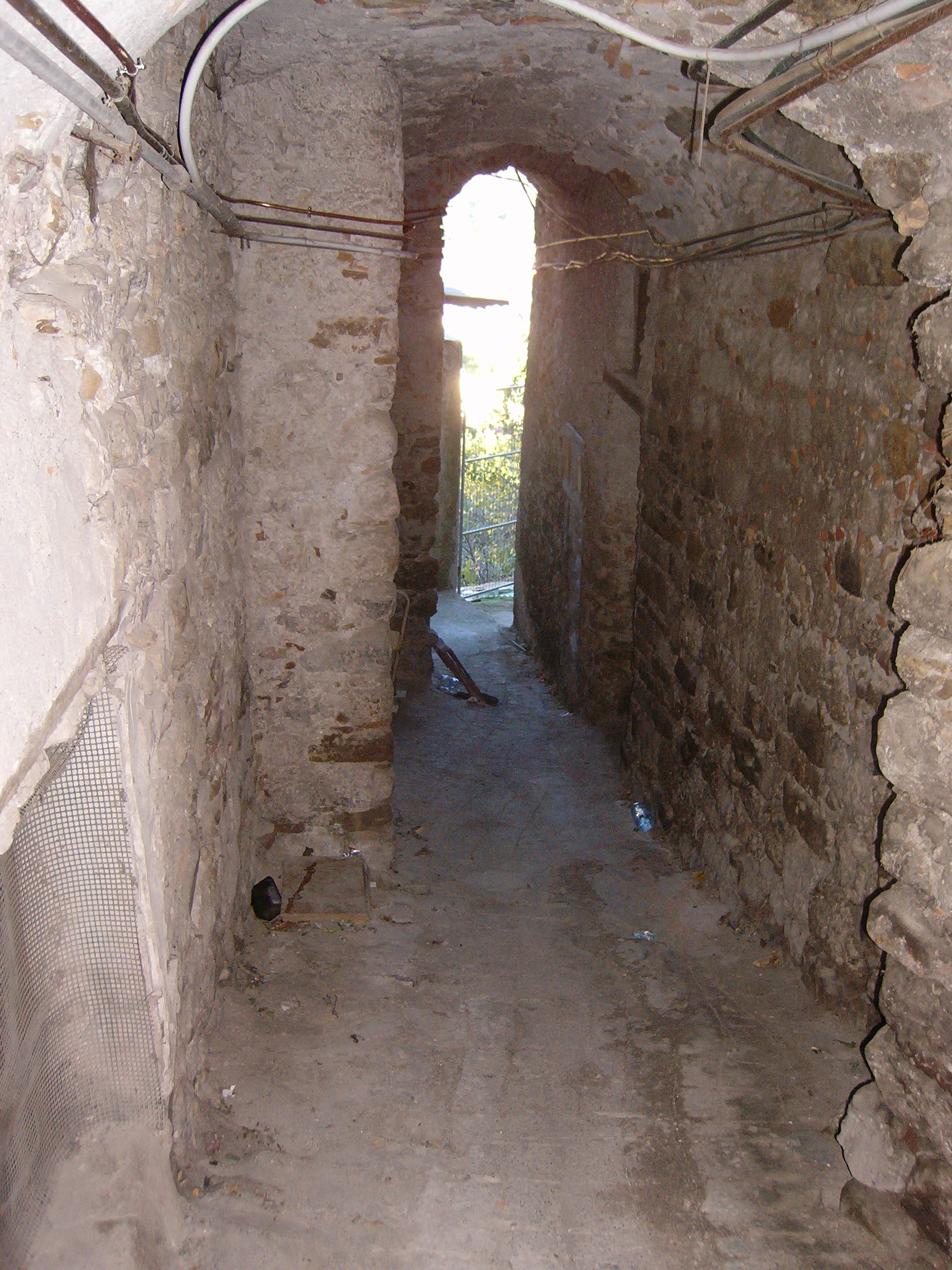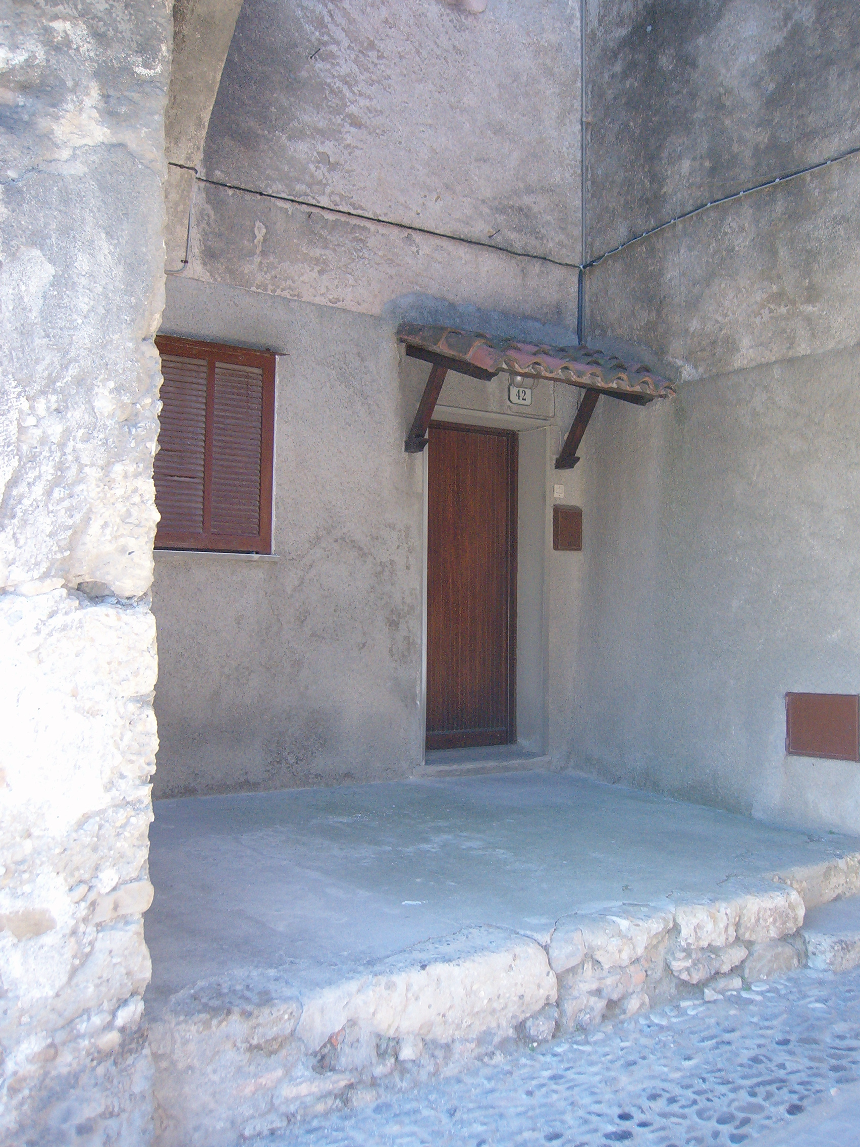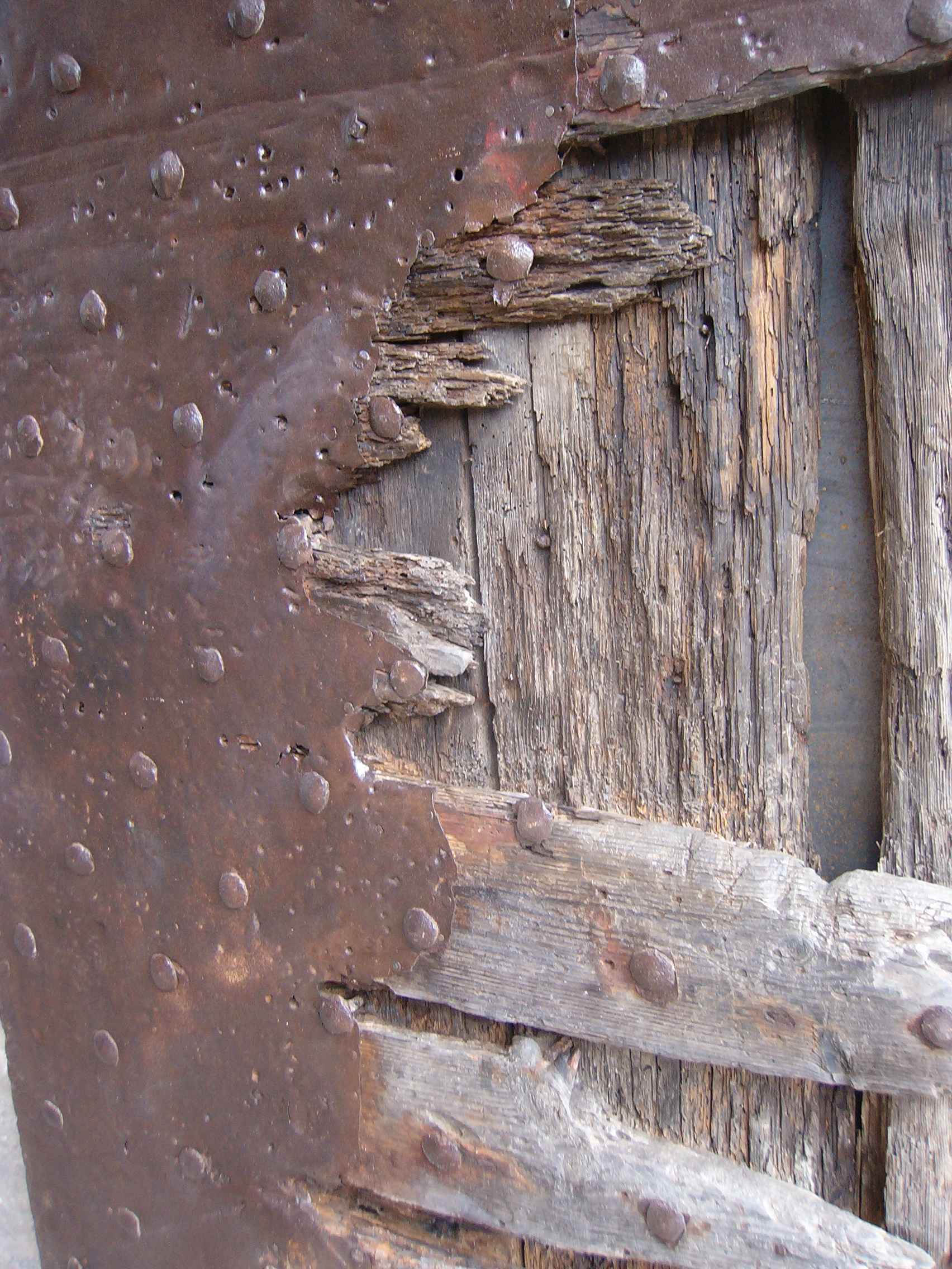 One of Porta Piemonte’s doors – the iron cladding has been nailed down to prevent it from breaking away and the larchwood treated to prevent further deterioration. Considering this door is at least 500 years old and faces North it hasn’t done too badly. The other door in this pair couldn’t be repaired so a new one was made in the same style.