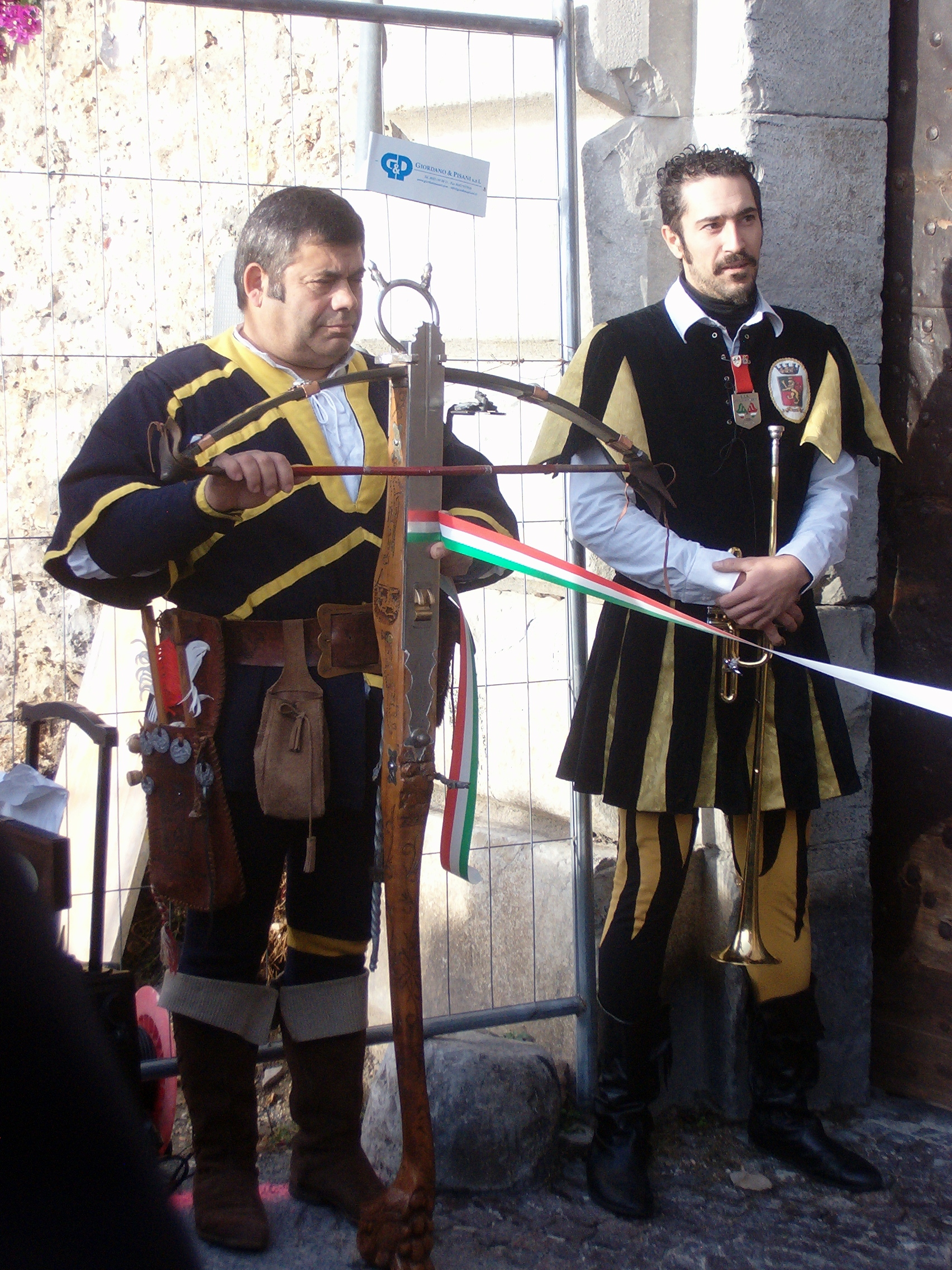 Ventimiglia’s celebration of the return of the doors on Saturday included the bishop’s blessing, succinct speeches, a guard of honour formed by ceremonial crossbow bearers, and drummers and ceremonial flag throwers in medieval costume, as in the photos below.