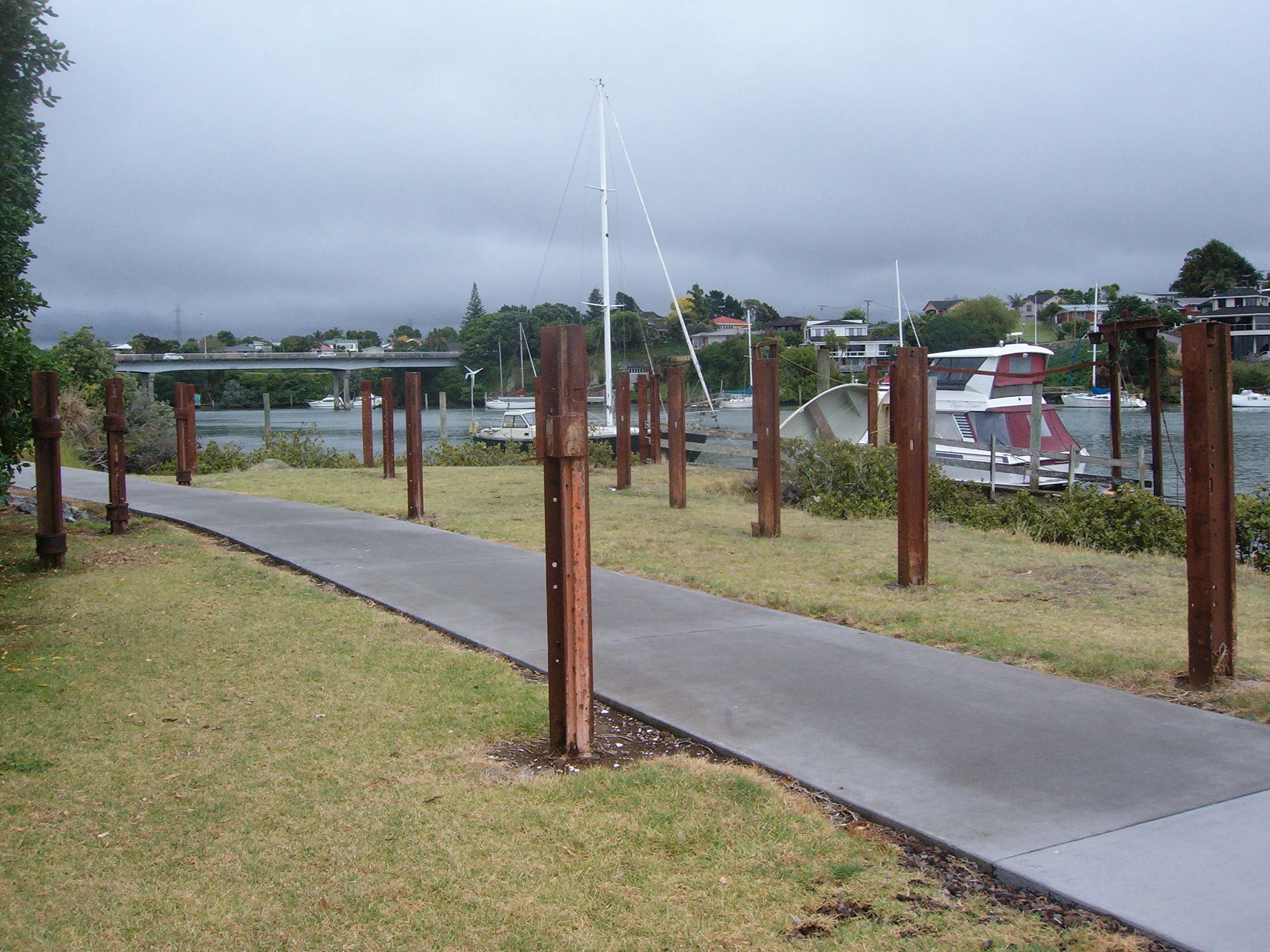 The trees are now within the Cascades Reserve, a wetland area crossed by the Pakuranga Stream and Wakaaranga Creek, and adjoining the Howick Historical Village site. The waterways and their catchment area are currently being revitalized by Landcare Trust through a public awareness and environmental education campaign called ‘Volcano to Sea’. www.landcare.org.nz